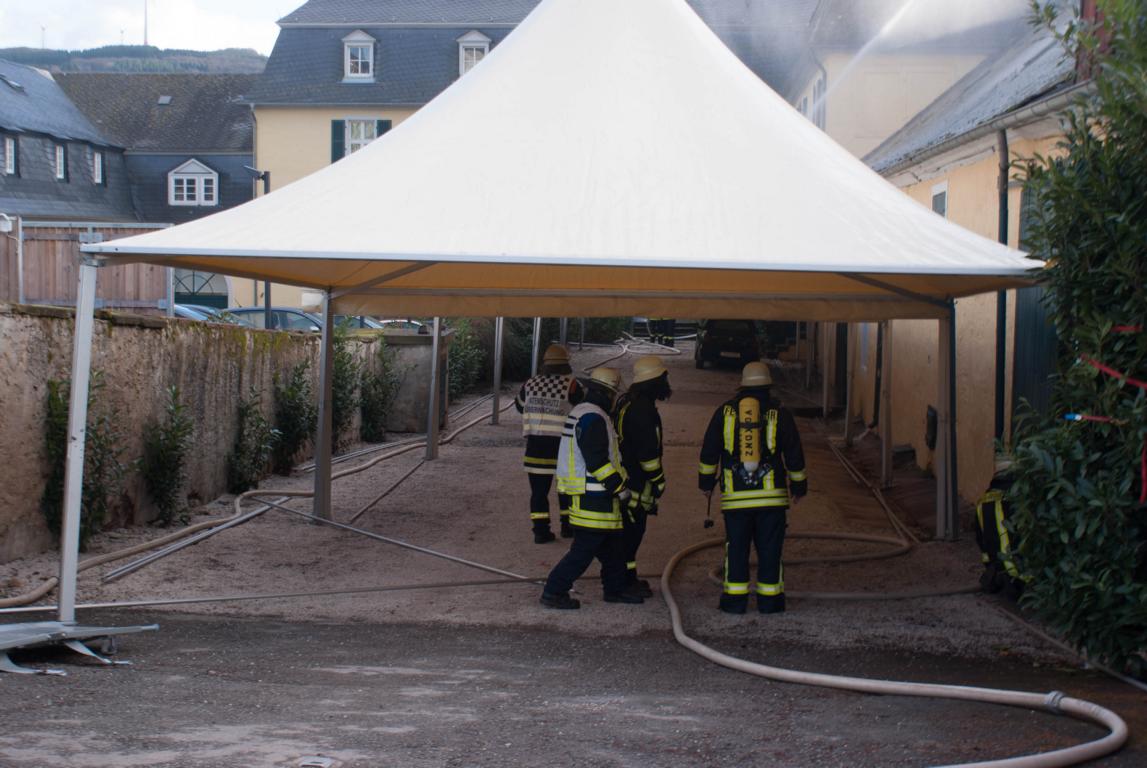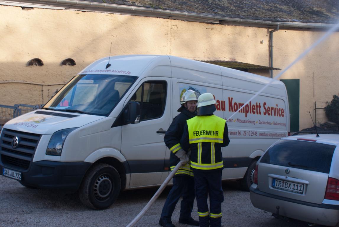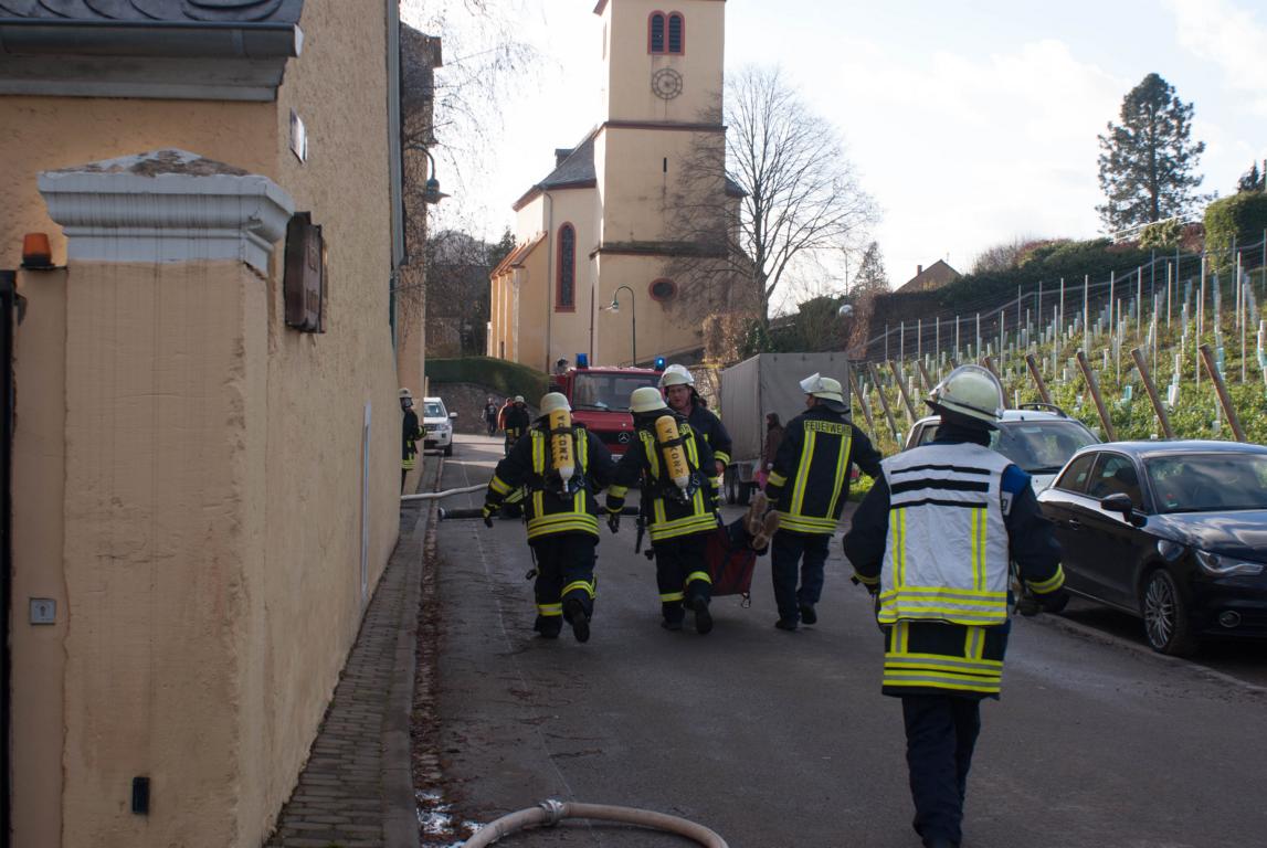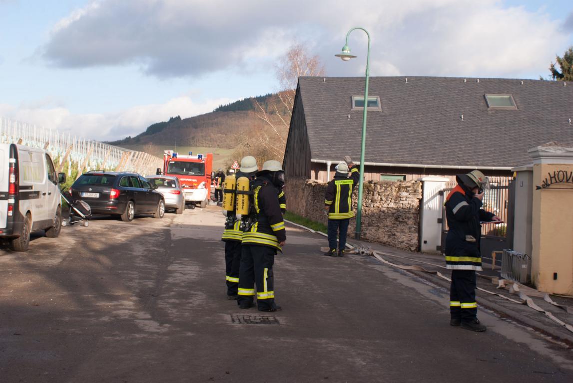 Am Samstagmittag kurz nach 14 Uhr heulten in Oberemmel, Kommlingen, und im Tälchen die Sirenen. Angenommen wurde ein Gebäudebrand in der Agritiusstraße beim Weingut "von Hövel" mit eingeschlossenen Personen.Die Feuerwehr Oberemmel übernahm sofort die Menschenrettung unter PA und den Außenangriff auf der Gebäudevorderseite. Die Brandbekämpfung auf der Gebäuderückseite übernahm die Fw-Niedermennig.